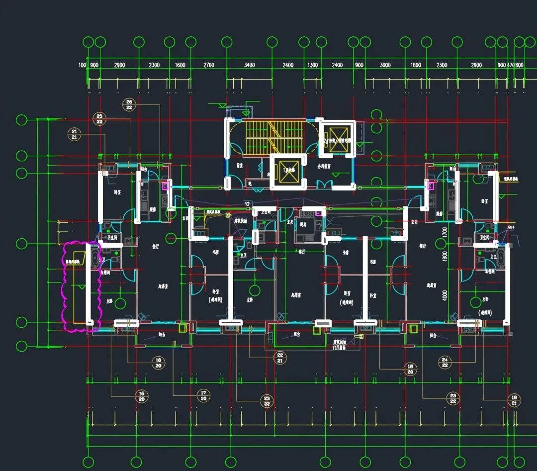 基于中望CAD绘制的建筑平面图(图2),AI-structure Copilot可在3~10分钟内完成结构智能设计,生成结果如图3所示。测试表明,该产品能够准确识别中望CAD图纸中的构件和建筑空间等信息,完成高质量智能设计,并将设计结果完整返回至中望CAD平台。